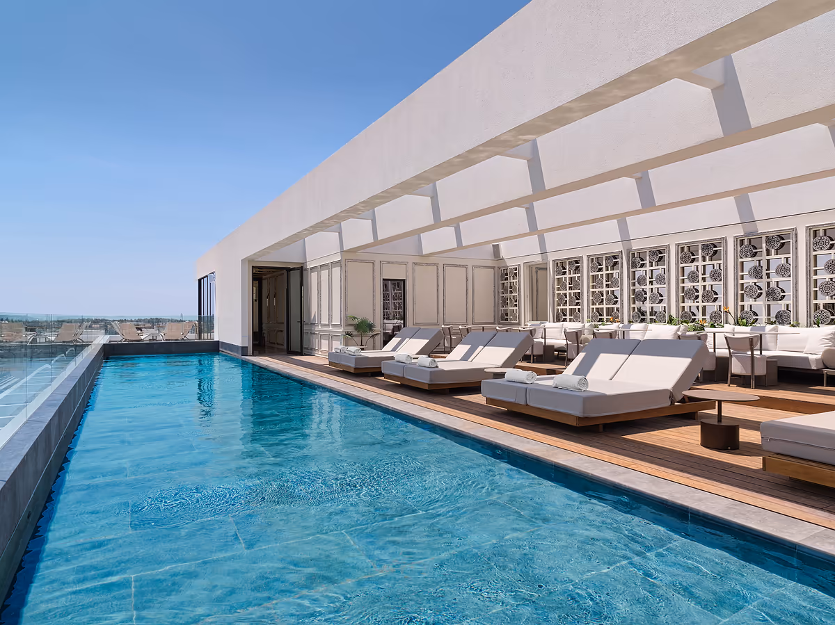 Δεν πρόκειται απλώς για ένα ξενοδοχείο, αλλά για ένα είδος χώρου τέχνης με θέα στην Ακρόπολη . Μια βεράντα με πισίνα, ένας εσωτερικός χώρος εμπνευσμένος από τη νέα ελληνική αισθητική και μια αξέχαστη θέα - την Αθήνα στο απαλό φως του βράδυ.
